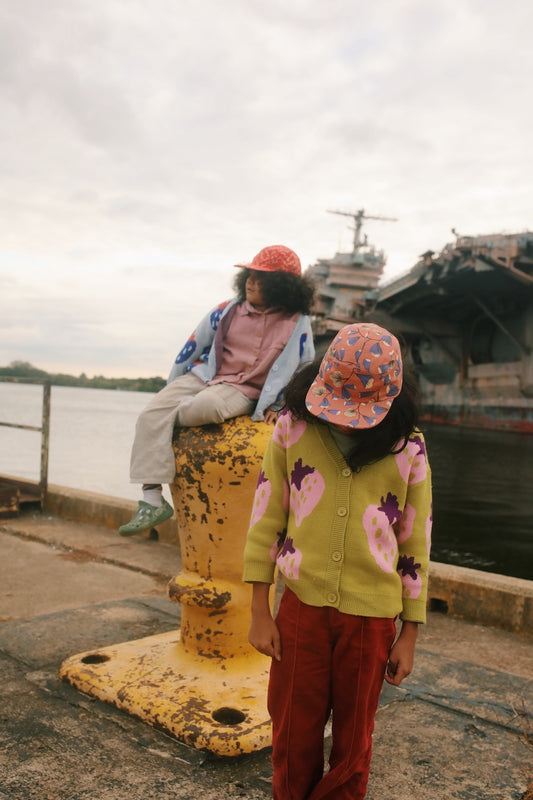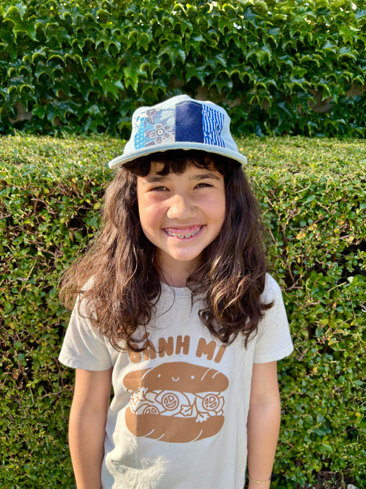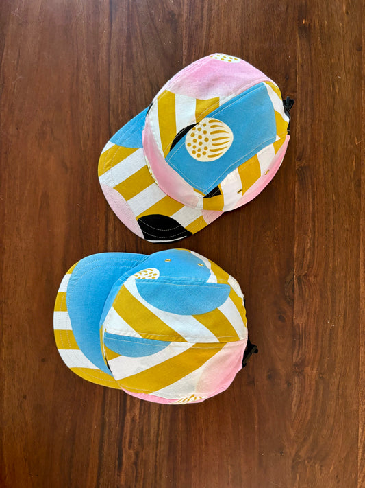 Small batch, 5-panel hats & other small objects. Cut & sewn one at a time.